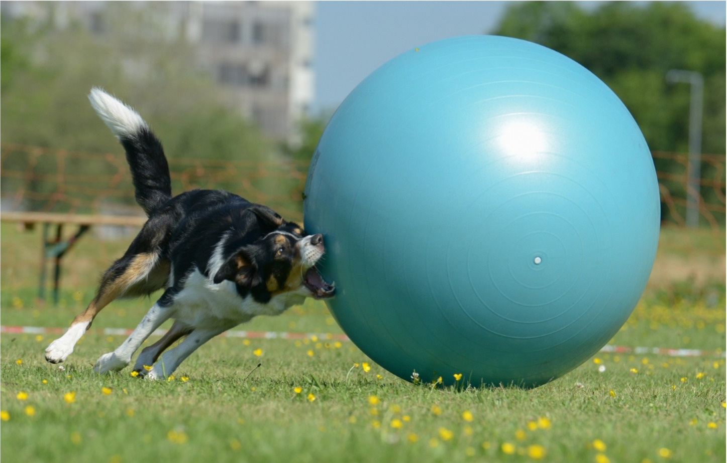 De manière cadrée, ce jeu très récent amène votre chien à pousser des ballons gonflables dans une zone définie en collaboration avec vous, comme un chien rassemble des moutons dans un enclos.