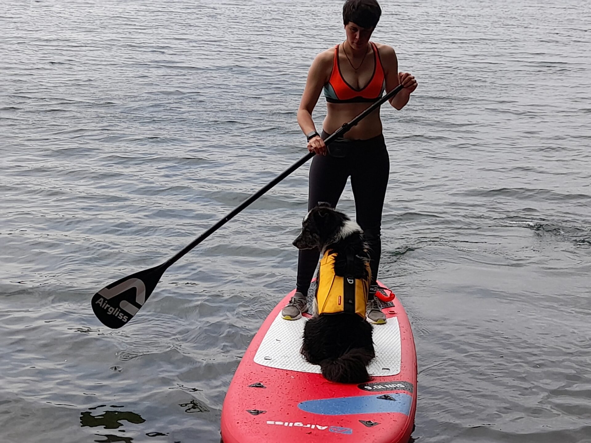 Venez apprendre à votre chien à apprivoiser la planche, les mouvements de pagaie, l’équilibre instable sur l’eau…