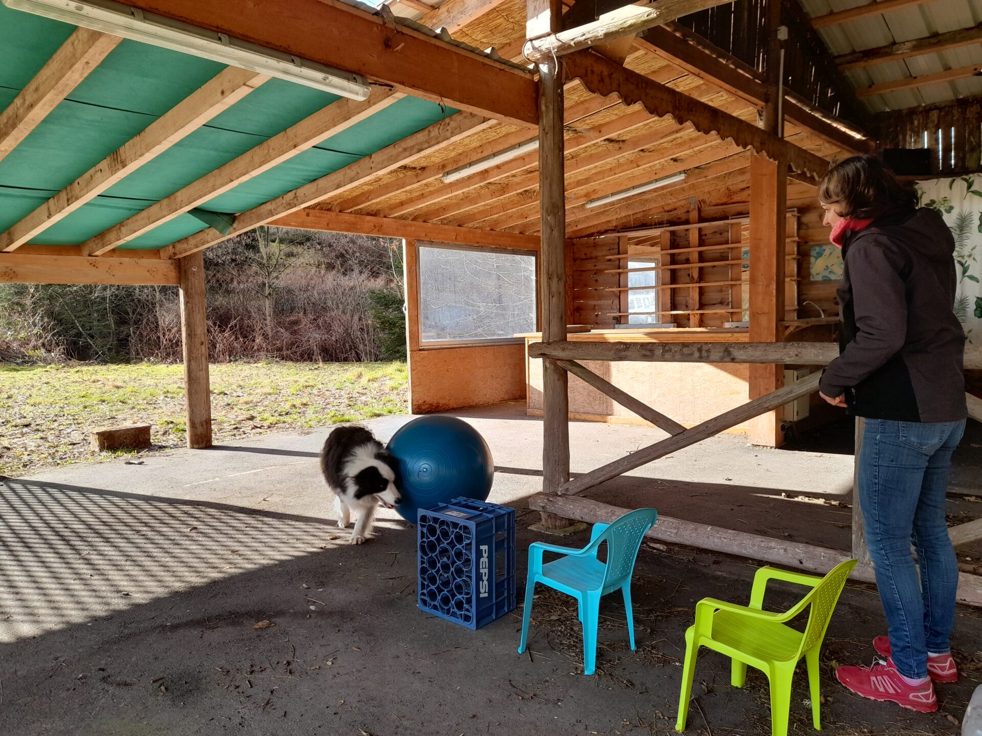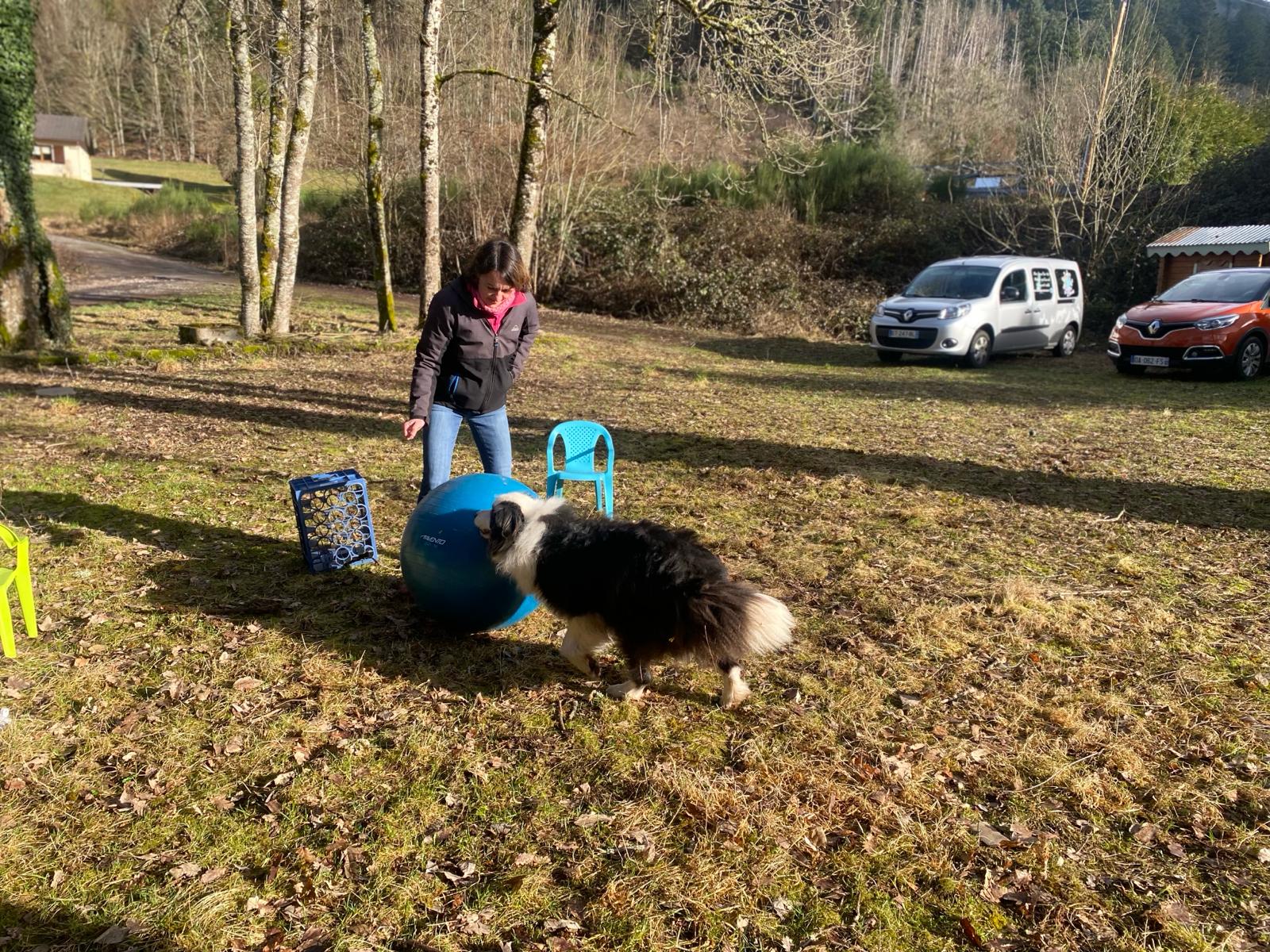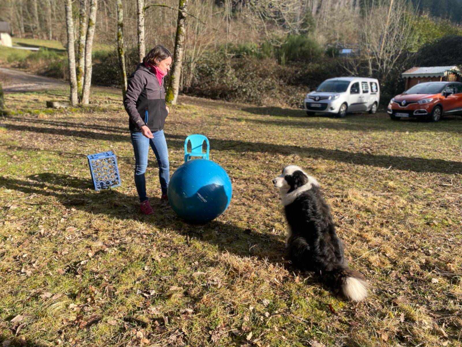 Ici, on développe la collaboration du chien avec son humain à distance.