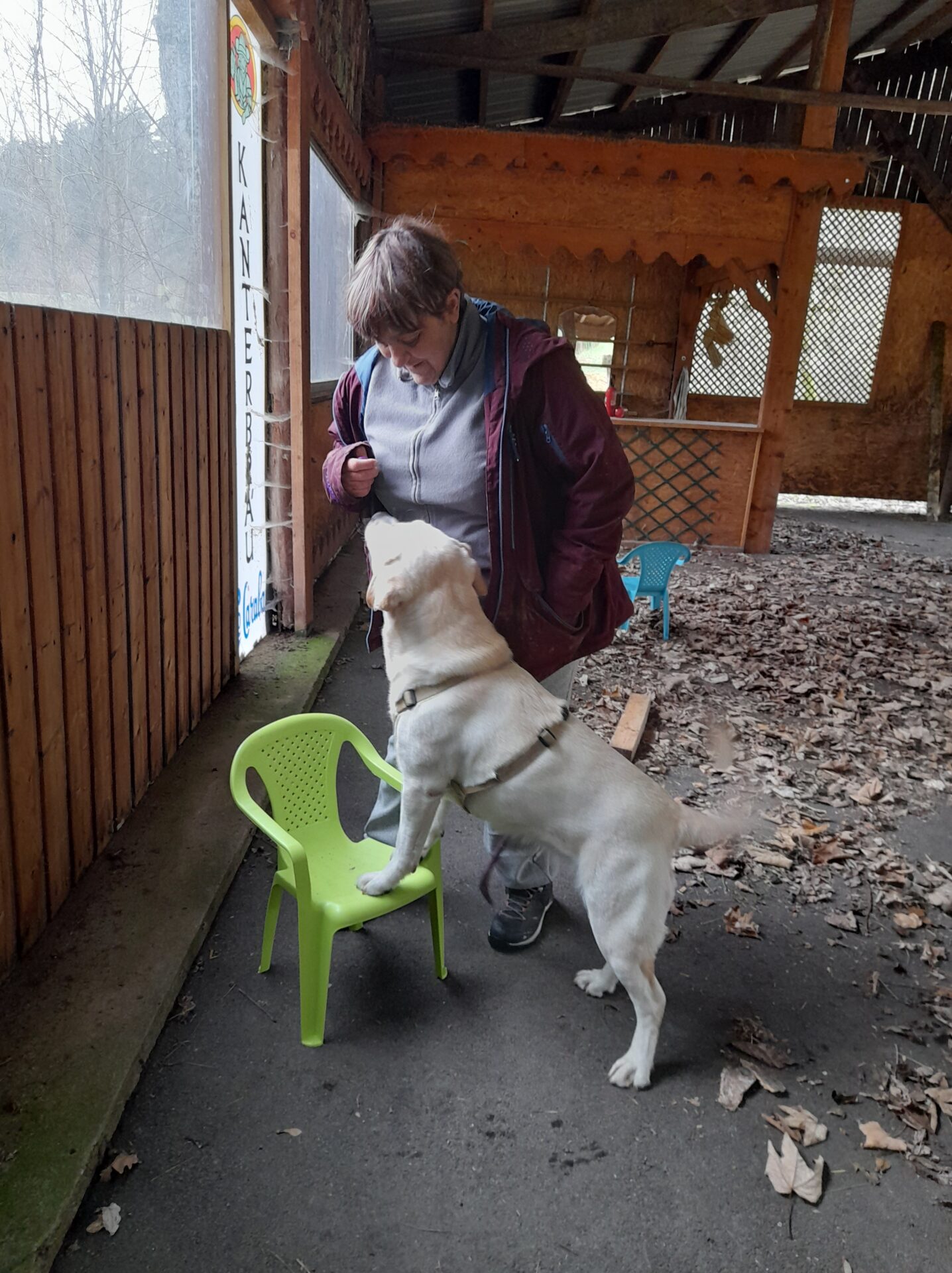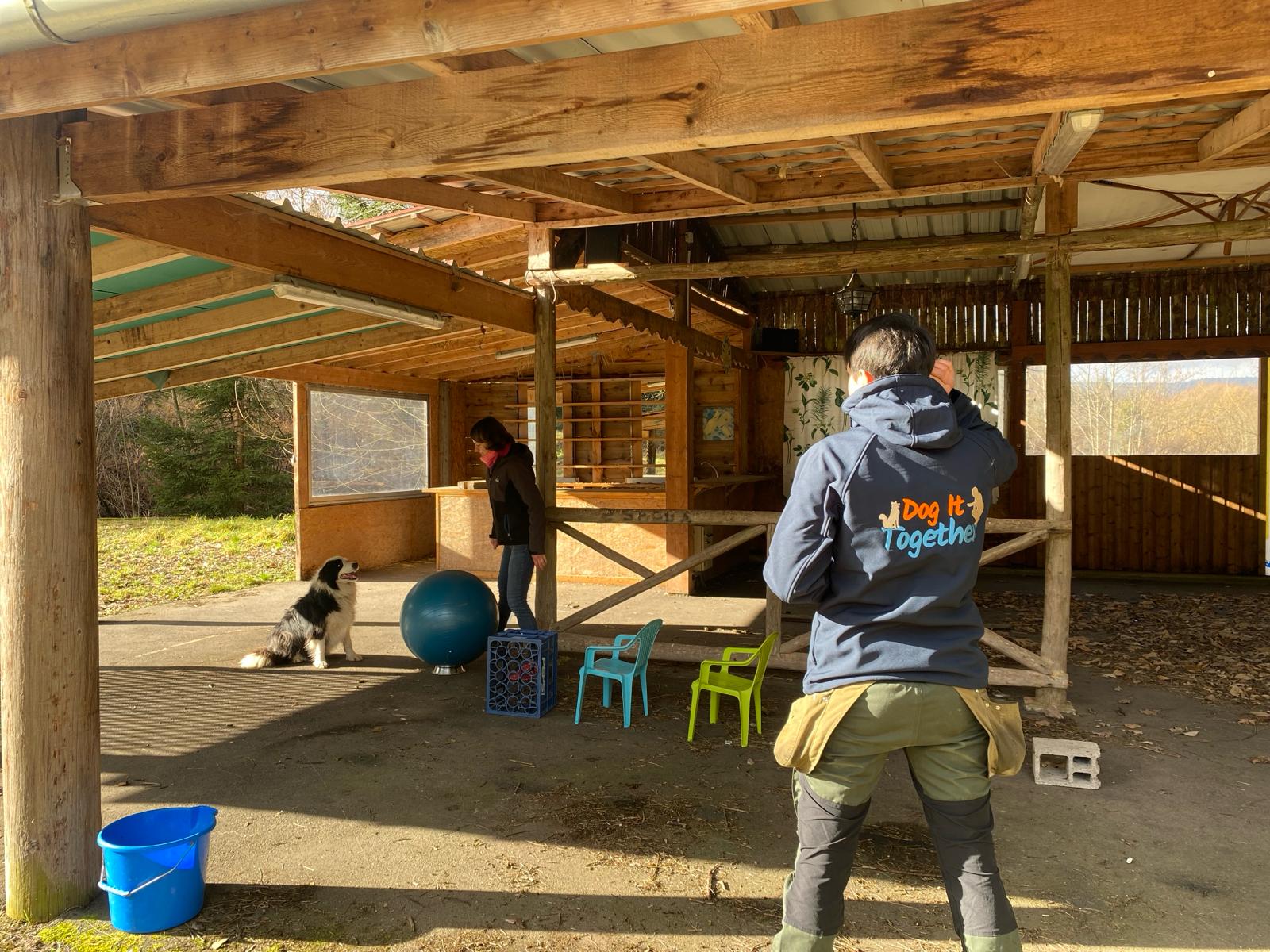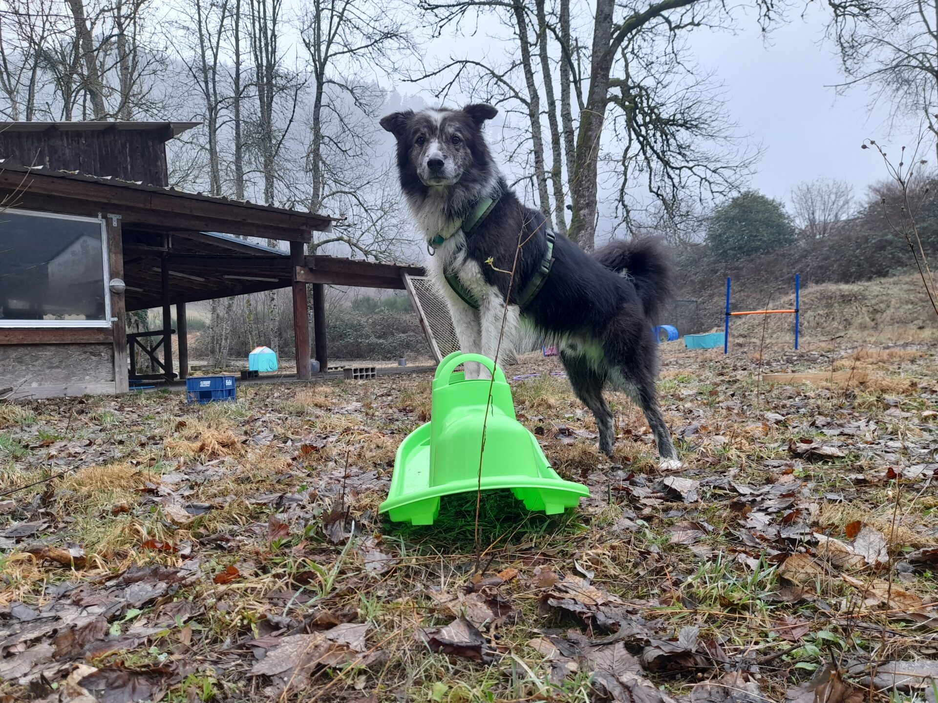 Ici, on développe la collaboration du chien avec son humain à distance.